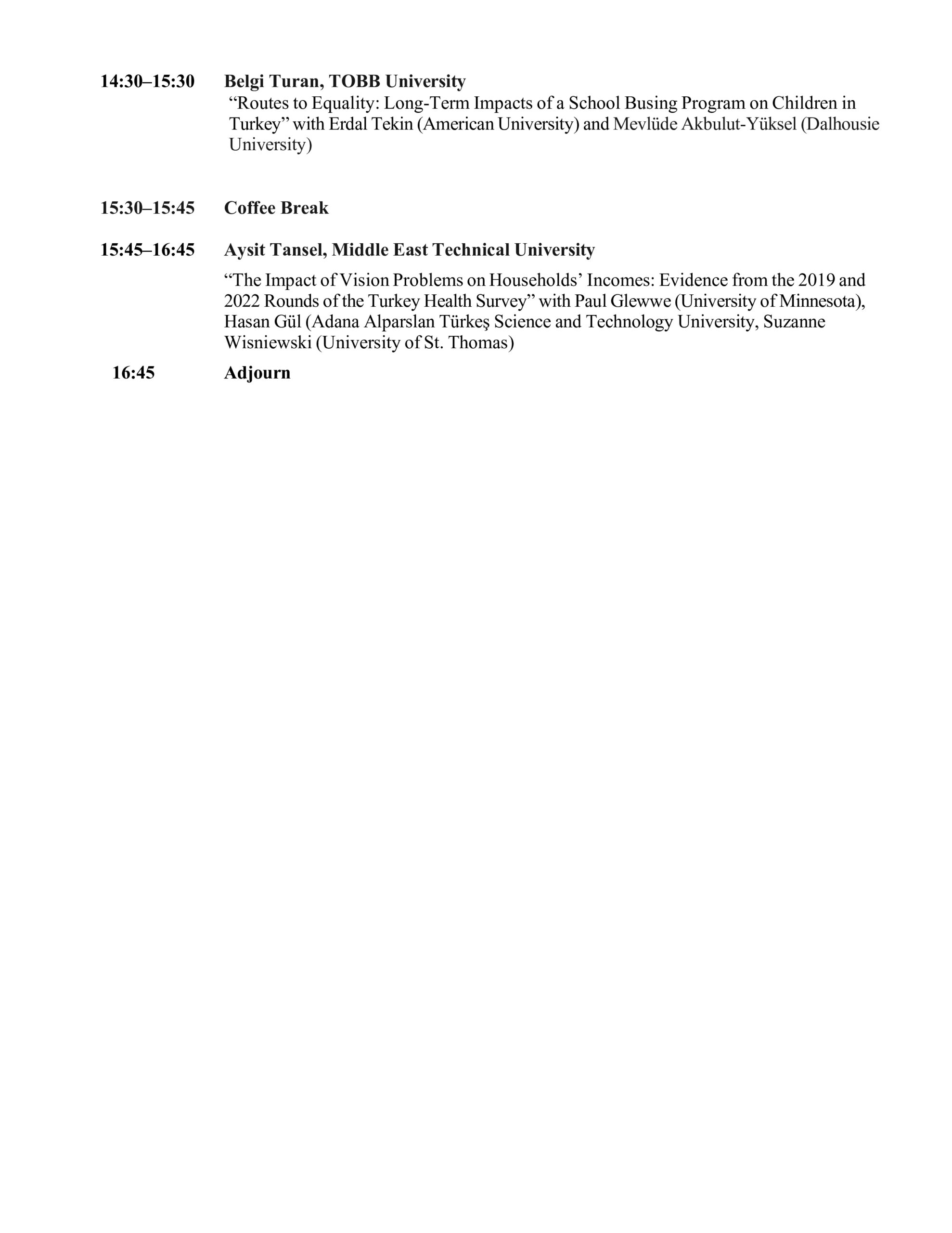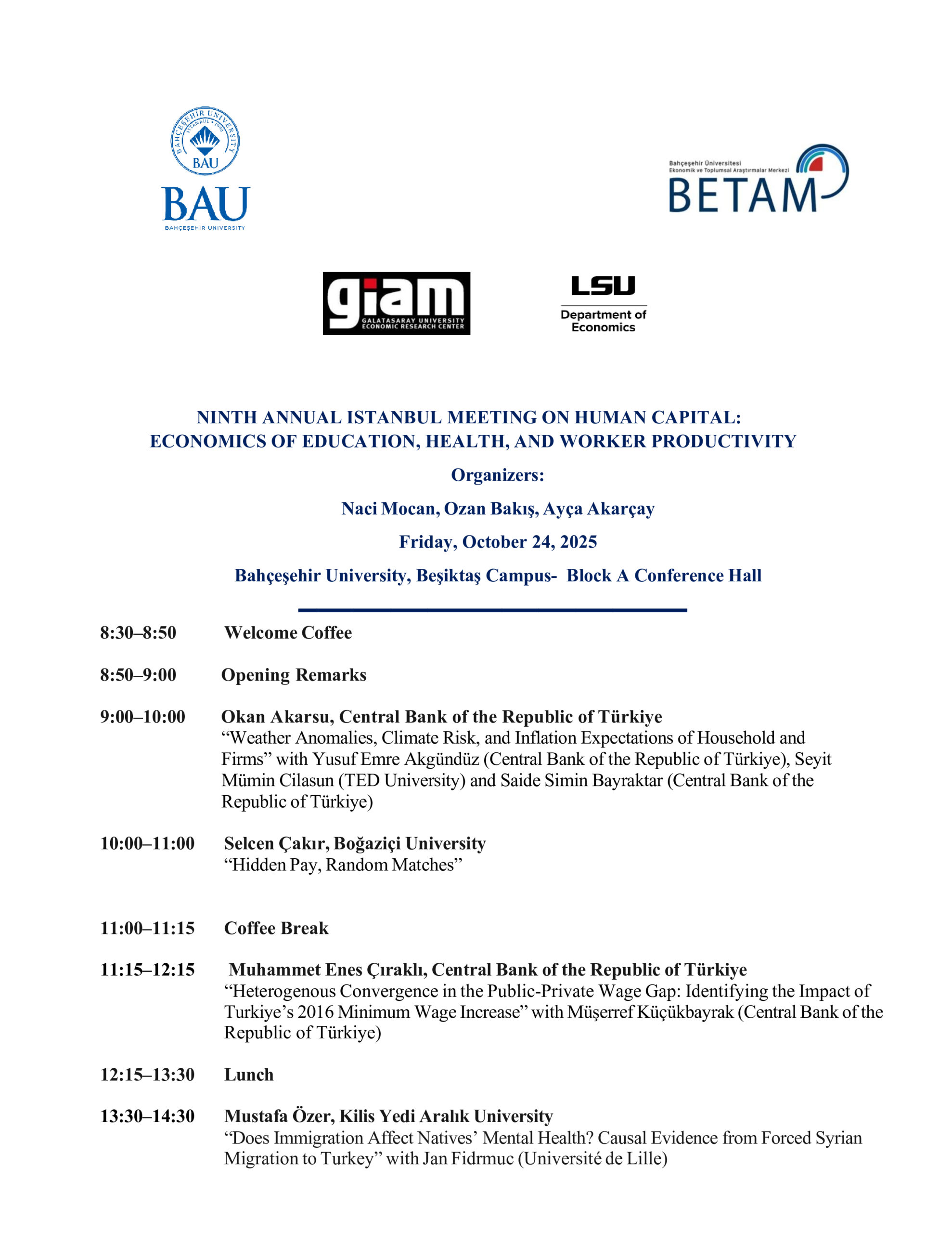 NINTH ANNUAL ISTANBUL MEETING ON HUMAN CAPITAL: ECONOMICS OF EDUCATION, HEALTH, AND WORKER PRODUCTIVITY